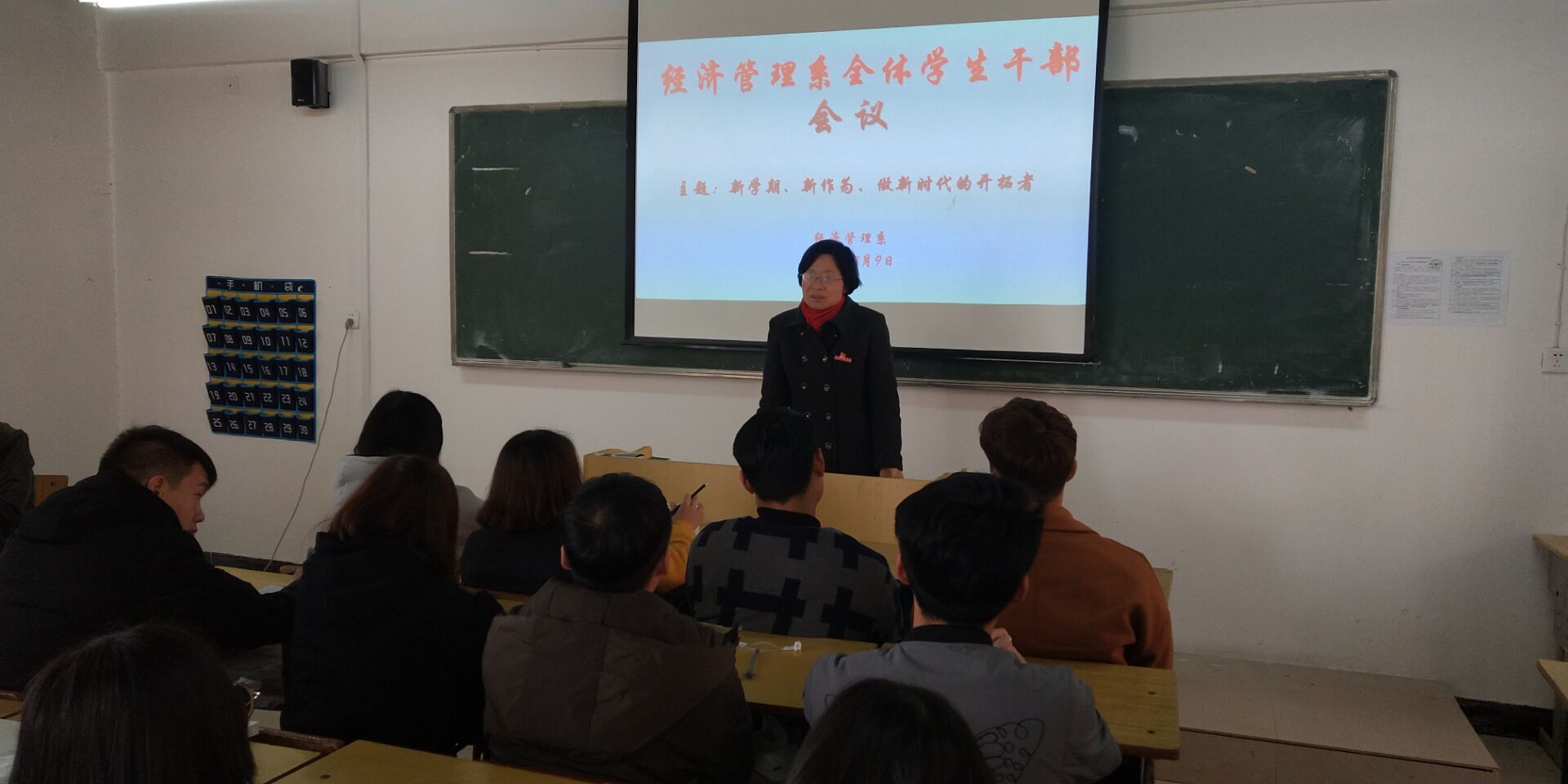本讯网 系分团委彭凯报道 2018年3月9日中午12点在综合楼3102教室召开全系团支部书记、班长、副班长、学习委员会议,此次会议由分团委书记杨武胜主持,经管系主任郭晓燕、副主任陈华庚、学生支部书记王东泉参加了本次会议。郭主任对学生干部提出3点要求:在思想上,要积极参加学校和系组织的各项政治学习,努力提高自己的思想政治觉悟,严格遵守学校的各项规章制度;在学习上,要起表率作用,争做学生的领头羊;在工作中,认真履行自己的职责,团结带领广大同学,为经管系的发展增砖加瓦,为学校做出应有贡献。