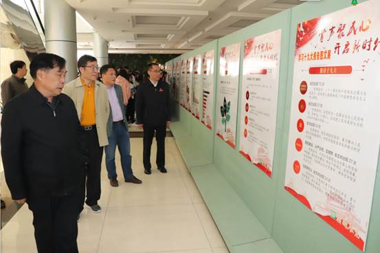 展览共展出展板46块,内容分为前言、十九大现场、党代表通道采访活动、新一届政治常委、第十九届中共中央组织结构图、数读十九大、习近平作报告全场71次掌声、十九大报告里的大白话、两个奋斗十五年和结语十个部分,通过图文并茂的形式,将十九大报告精选提炼,向全样师生宣传十九大相关内容。