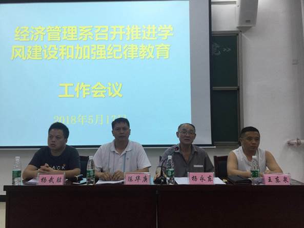 本讯网:杨武胜报道 2018年5月17日晚上经济管理系全体班主任和学生干部代表在新教学楼一楼3号阶梯教室召开安全教育暨学风纪律教育大会,我校副院长杨永东参加了此次会议,会议由系分团委书记杨武胜老师主持。