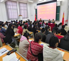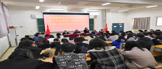 本网讯 经管系张富生报道 2019年是新中国成立70周年,是全面建成小康社会、实现第一个百年奋斗目标的关键之年,深入推进平安建设,着力构建共建共治共享的社会治理格局意义重大。为了贯彻落实《关于开展学院综治(平安建设)宣传月活动的通知》相关文件精神,努力建设和谐平安校园,推进平安建设的方针、政策,经济管理系于4月2日在经济管理系实训楼119教室开展关于学院综治宣传月活动布置会暨学生干部工作会。经管系党总支书记、系主任郭晓燕,经管系党总支副书记、教工党支部书记、副主任陈华庚,经管系党总支委员、学生党支部书记王东泉, 经管系行政干事、团委书记张富生以及经管系全体学生干部参加会议。大会由经管系团委学生会主席梁生武主持。
