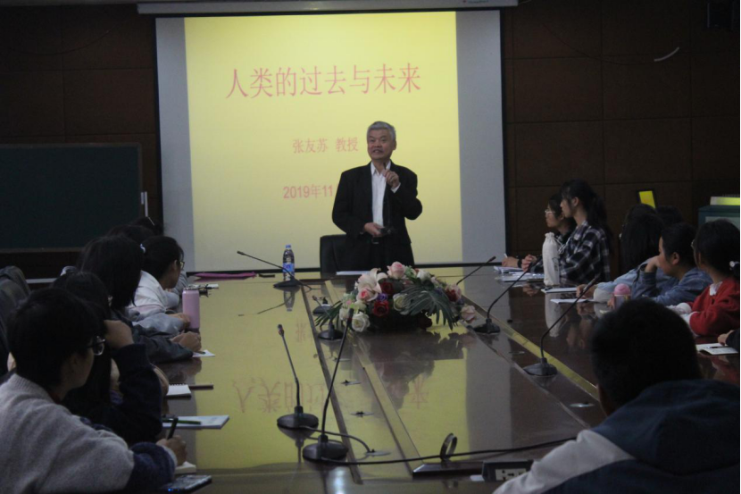 为经管系物流本科新生作了《人类的过去与未来》的报告,要求学生不仅要埋头读书,还要抬头仰望星空。