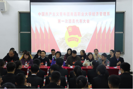 (本网讯经管系张富生报道)筑梦新时代,奋斗新青年。2019年12月7日,共青团南昌职业大学经济管理系第一次代表大会在经管系118多媒体教室隆重召开。本次大会是在中国特色社会主义进入新时代的关键时期,我校实施职业本科教育试点之际,系部召开的一次青春盛会。大会圆满完成了各项议程,选举产生了第一届团总支委员。学校党委委员、副校长王小琴,经管系党总支书记、主任胡青春,经管系党总支副书记、副主任陈华庚,学校团委于飞等兄弟院系团总支主要负责人,经管系辅导员以及180名团员青年代表出席会议。经管系团总支副书记张富生代表经管系团总支委员会向大会作了题为《不忘初心跟党走,牢记使命勇担当,为开创经管系共青团工作新局面而努力奋斗!》的工作报告。开幕式热烈而隆重,大会在全体与会人员嘹亮的国歌和团歌歌声中拉开帷幕。