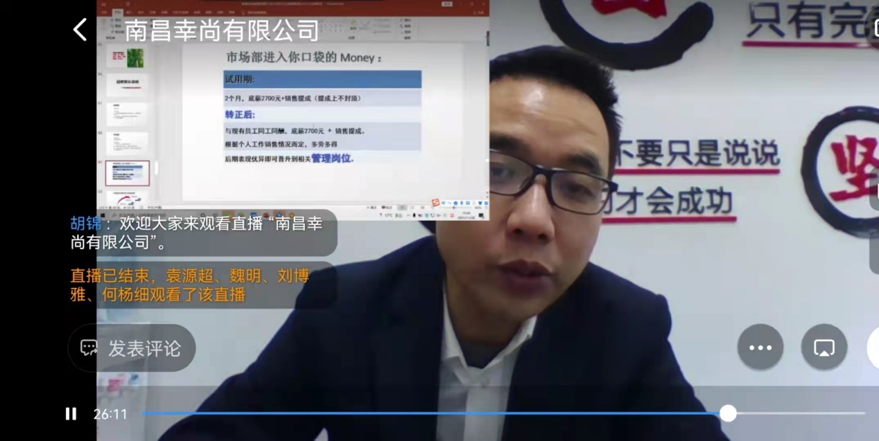 本网讯 经济管理学院申斌、张富生报道 2021年11月30日下午14:00-18:00经济管理学院举行第四场线上专场招聘会,本次参与招聘会的企业有慈溪太平鸟物流有限公司、南昌幸尚商贸有限公司以及江苏顺丰速运有限公司,面向宣讲的有物流管理专业的(物流管理1901班、物流管理B2021班)、市场营销专业的两个班级(市场营销1901/1902班)、工商企业管理专业两个班级(工商企业管理1901/1902班),共245人,参与人数225人。同时于12月1日下午16:30在经济管理学院实训楼119召开两场线下宣讲,我院提前谋划,提早布署,扎实推动2022届毕业生实习就业工作,精准对接各类企业,通过线上和线下相结合,整合校内外资源,多形式多角度开展职业生涯规划教育,增强学生责任意识。接下去,学院将会进一步做好市场开拓,平台搭建和毕业生实习就业指导工作,让学生尽快找到适合自己的实习岗位,扬就业之帆,启梦想之程。