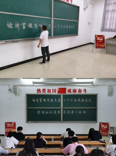 6月1日下午4点我院党委组织人员进行考试赛场的布置,党委副书记王东泉亲自到各考试场地板书竞赛标题,营造了良好考场氛围。随后,在经管实训楼党员活动室召开党团知识竞赛考务会,学院党委书记陈华庚、党委副书记王东泉、各支部书记、委员及教师党员出席会议。在会上,陈华庚书记强调,要重视考风考纪,抓严抓实,做到公平公正。