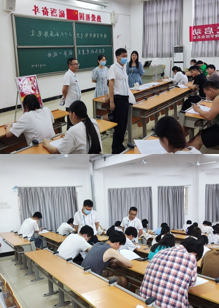 下午5点,我院分别在经管实训楼117、118、119三个多媒体教室进行院级复赛考试,学院党委书记陈华庚、党委副书记王东泉、组织员申斌对各考场进行巡视。考试中,各位学生从容应对,认真作答,大部分都提前完成了试卷。晚上7点,学院党委召集党员同志参与改卷和统分工作,大家全神贯注、认真批改,历经近三个小时完成了所有工作,最后按分数排名取前63名同学进入院级决赛。